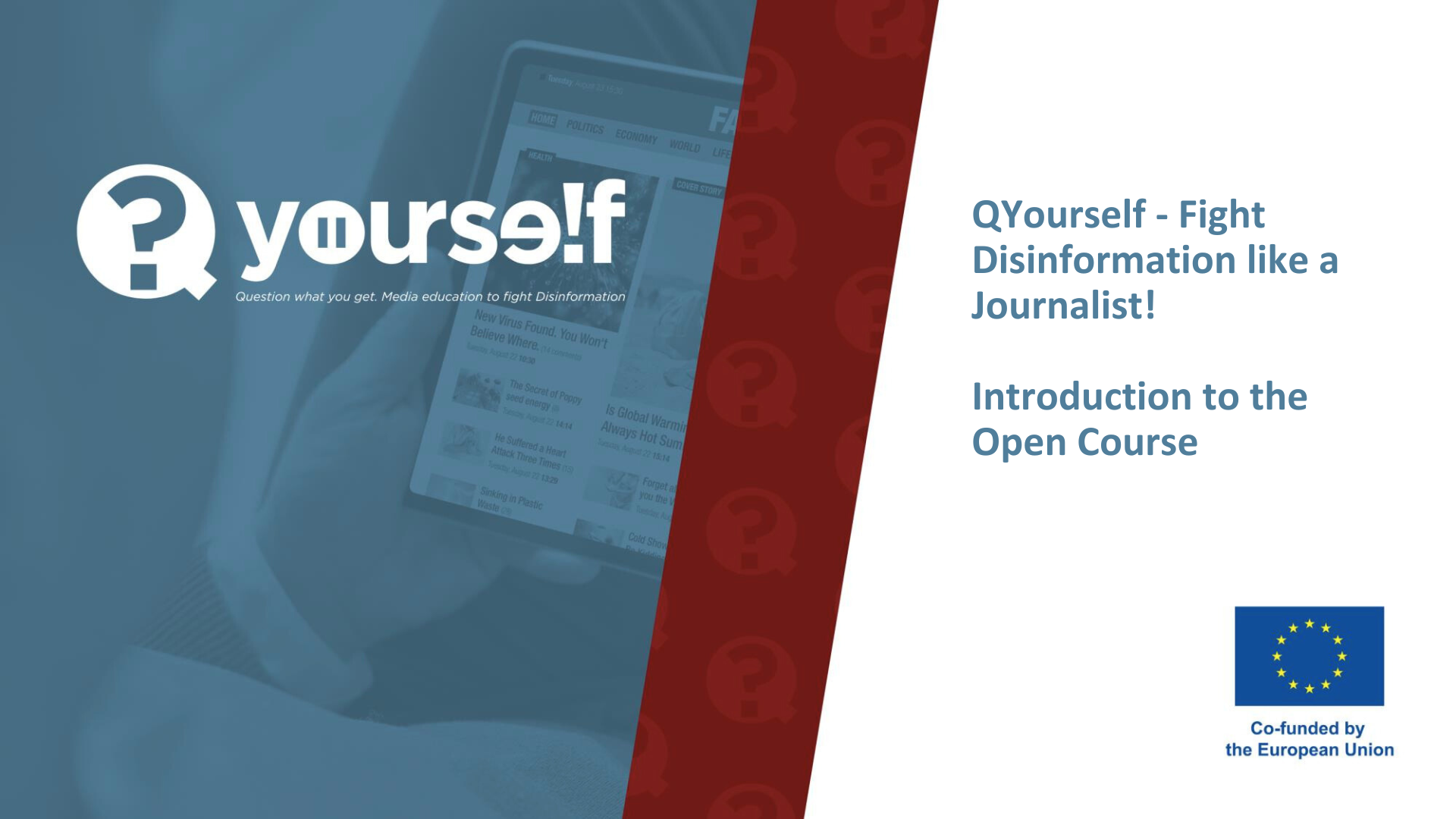The handbook will take into account the DigCompEdu competence framework and the European Commission's recently published guidelines on tackling disinformation, and these resources will then be tested and adapted in collaboration with educators and teachers in five European countries - Germany, Greece, Italy, Poland and Spain - in a series of tests in a variety of real educational settings. Using the QYourself handbook, participating teachers will take part in a series of professional development sessions and then put their newly acquired knowledge into practice. In these sessions, they will create and implement their own lesson plans and materials for their specific learners, which will then be included as additional resources in the QYourself handbook.